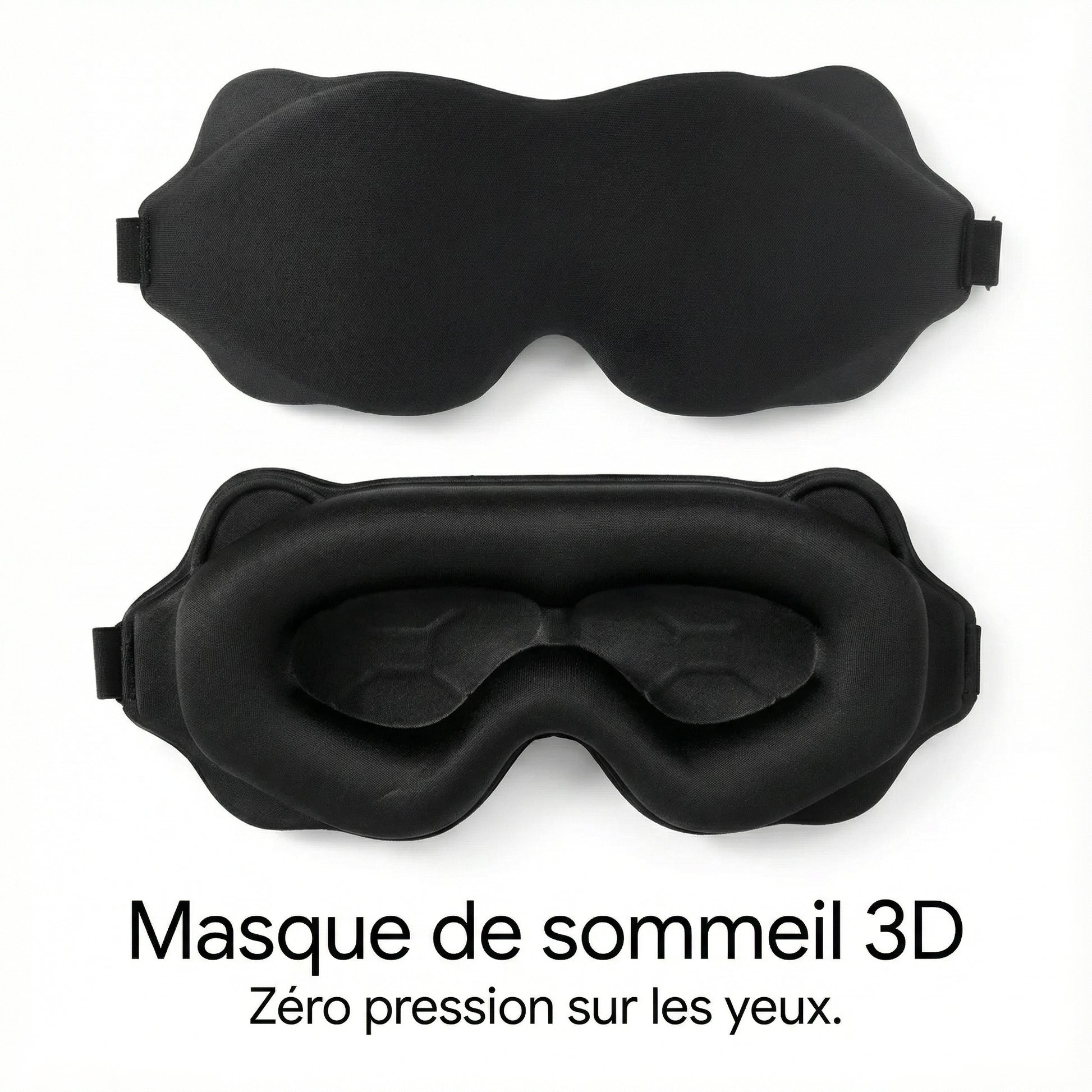 Masque de sommeil « Noir Total » — Zéro pression, blackout réel, sangle réglable